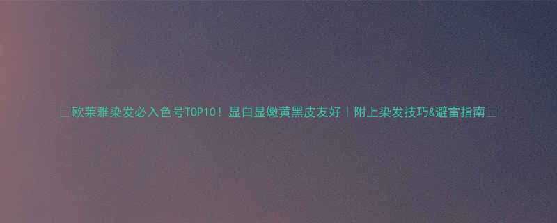 🔥欧莱雅染发必入色号TOP10!显白显嫩黄黑皮友好|附上染发技巧&避雷指南🔥